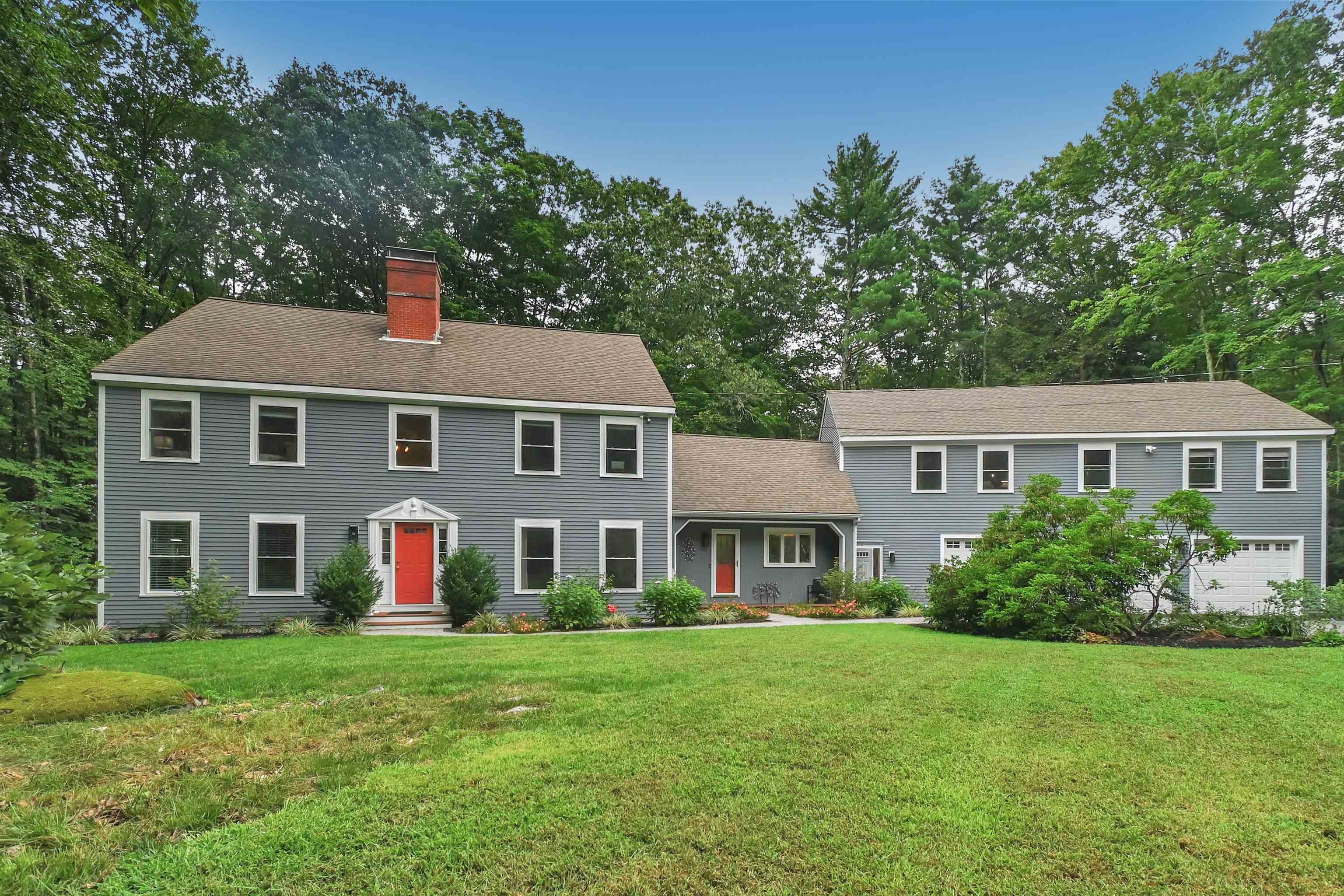 Surrounded by conservation area and steps from local trails, this Marshall Farms well maintained expansive colonial offers over 4,000 sp ft living space along with a one bedroom in-law with private entrance! Enter the newly updated open concept sun filled eat in kitchen with cathedral ceiling, center island, newer SS appliances and adjoining 4 season sunroom. Room to entertain with the first floor formal living room & family room both with fireplaces. Formal dining room, office space and laundry room. round out the 1st floor. 2nd floor features primary ensuite with updated bath featuring built ins, walk in tiled shower, soaking tub & double vanities. 3 additional spacious 2nd floor bedrooms. Lower level offers weight room and new media room, offering acoustic panels,- perfect for movie and sports watching! Lots of options with the new 1,200 sq ft private entrance in-law with open concept living room, kitchen with center island, separate bedroom, bath. Additional upgrades include: newly finished garage with room for 7 cars, new deck, mini splits in bedrooms and ADU, newer hardwood flooring and new Anderson windows throughout. Easy access to local trials and located at end of a cul-de-sac. This well appointed home offers privacy and space for all your needs! Only minutes to downtown Exeter, Phillips Exeter Academy, shopping, Exeter hospital, Amtrak beaches and highways. Delayed showings begin at Open House Thursday August 29th from 4-6pm and Saturday 10-12.