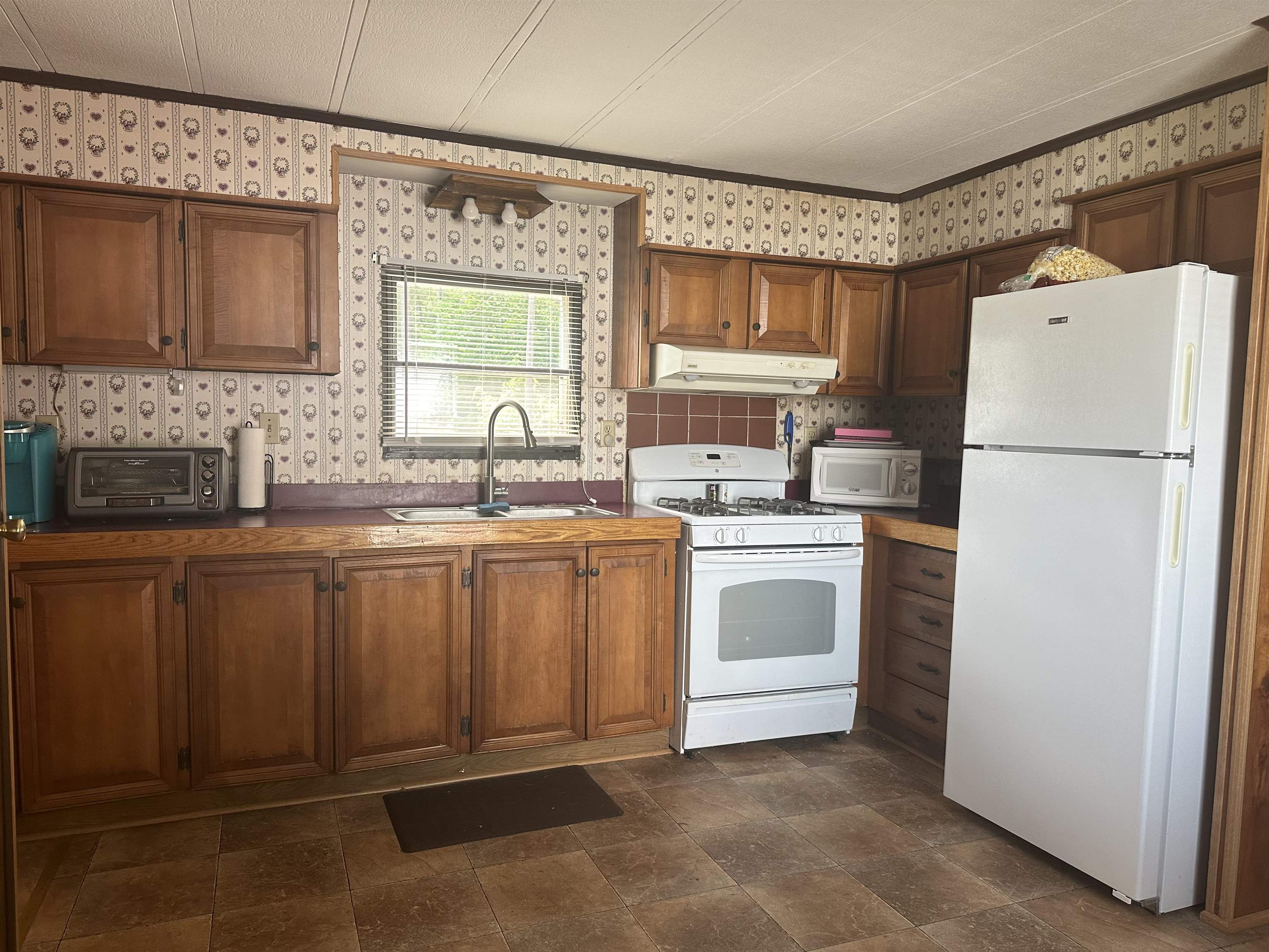 This two bedroom, one and a half bath mobile home in a park, offers easy living with everything on one level. The kitchen has a gas cooking stove, has lots of cabinets and plenty of storage space, including a pantry closet. There is also more opportunity for more storage off of the kitchen. The spacious, light and bright livingroom features a quaint, decorative only fireplace. The good sized primary bedroom with a double closet is located just steps to the full bathroom while the second bedroom has a closet and a half bathroom. It is nice that the bedrooms are located on both ends of the home- giving the separation and more privacy. The home includes handicap features such as walk-in shower, a comfort toilet with sidebars and a ramp up to the front door, providing the benefit of no steps. These can easily be removed if not needed. Why rent when you can own for possibly less than the cost of renting? Additional features: *Enjoy community living *Easy to maintain lot *2 car driveway *Shed included *Laundromat in park -Park rent $520 -No dogs -Up to 3 people