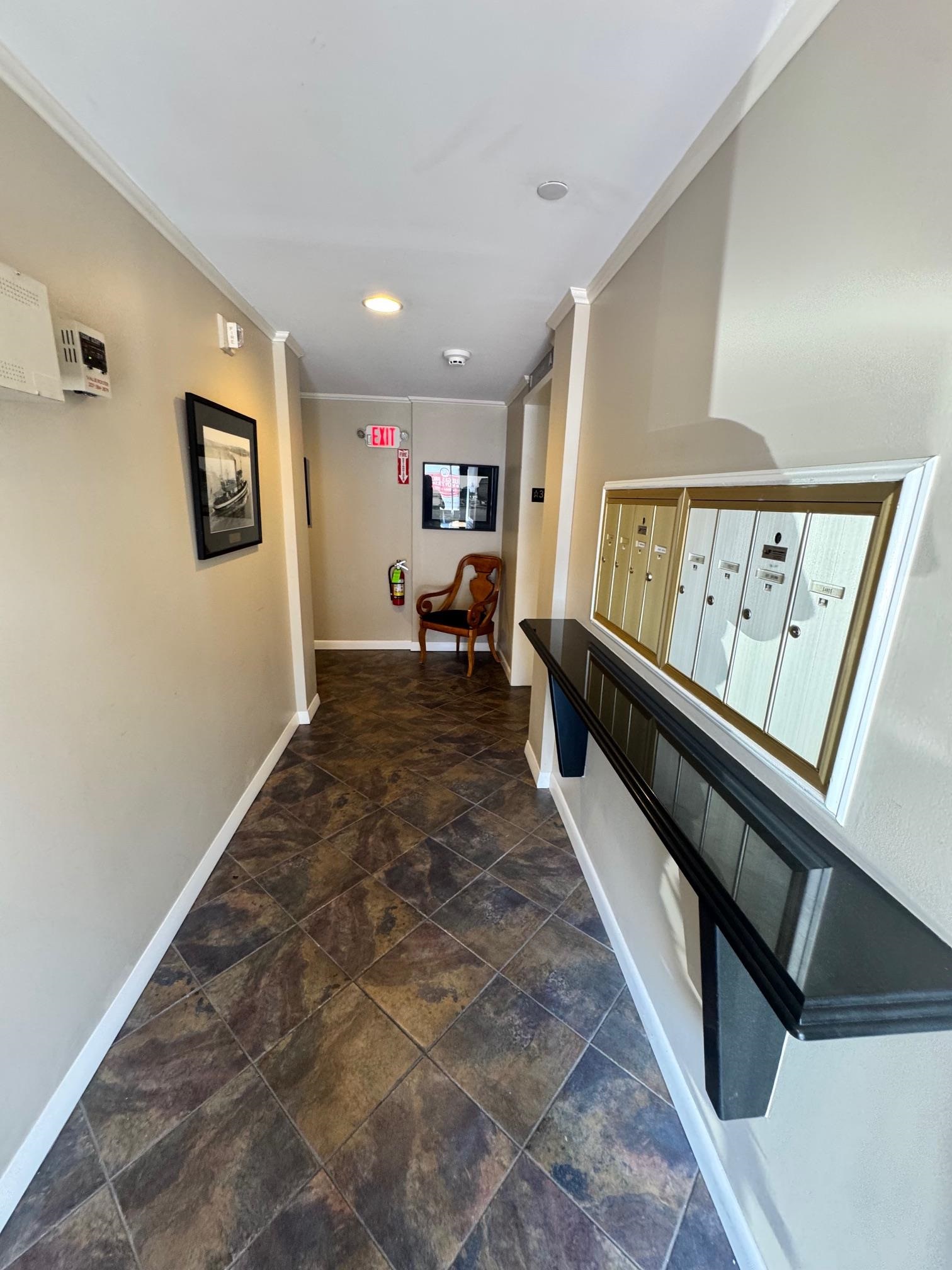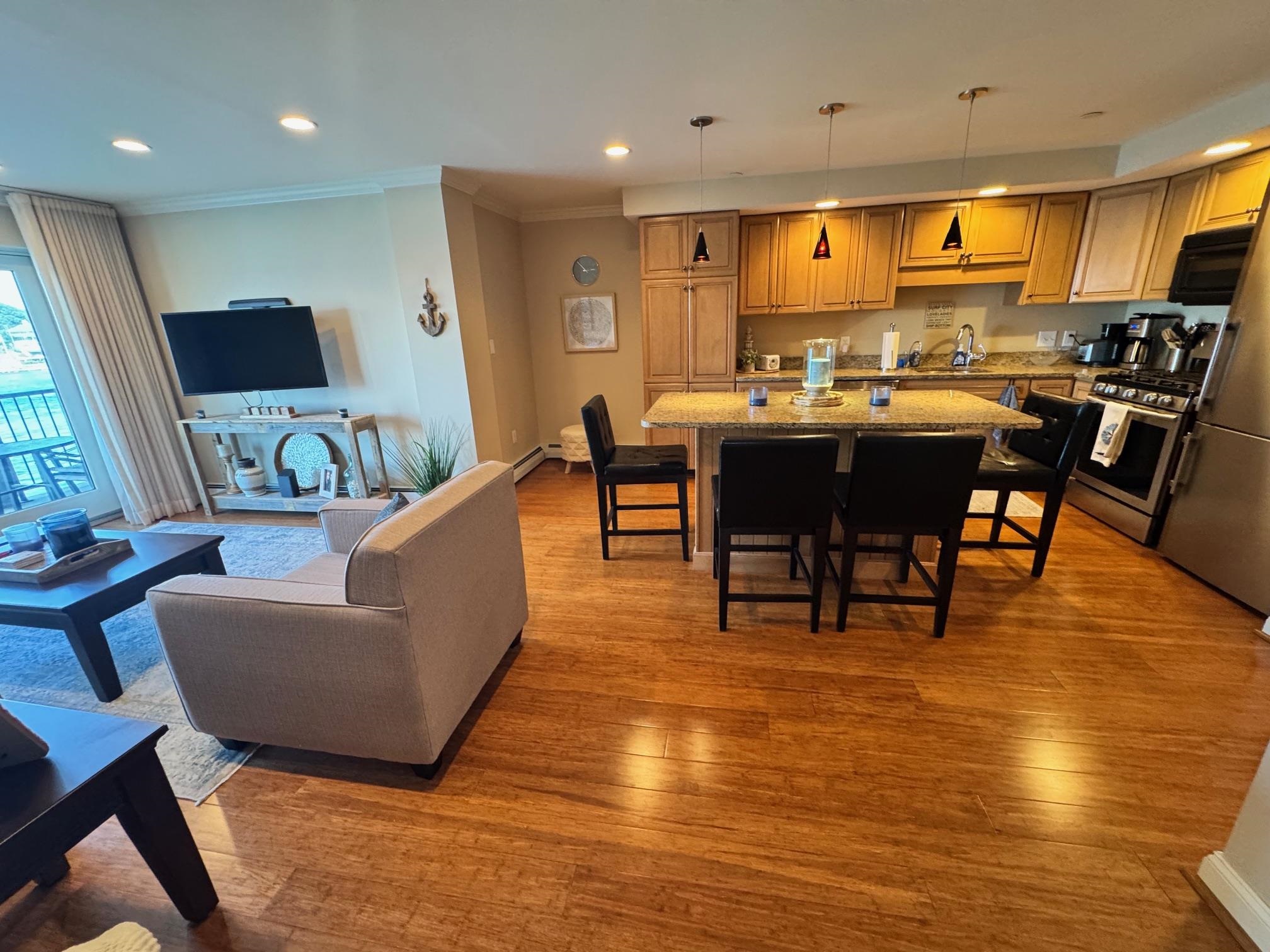 Waterfront Two Bedroom Condominium-One level living-At street level, secure building with one car off street parking and a HUGE deck overlooking the river, the tugboats, and everything Portsmouth is famous for! Hardwood Floors, two large bedrooms, living room, two baths, NEW in unit washer dryer, rent includes, heat and hot water, in the best location in Portsmouth!