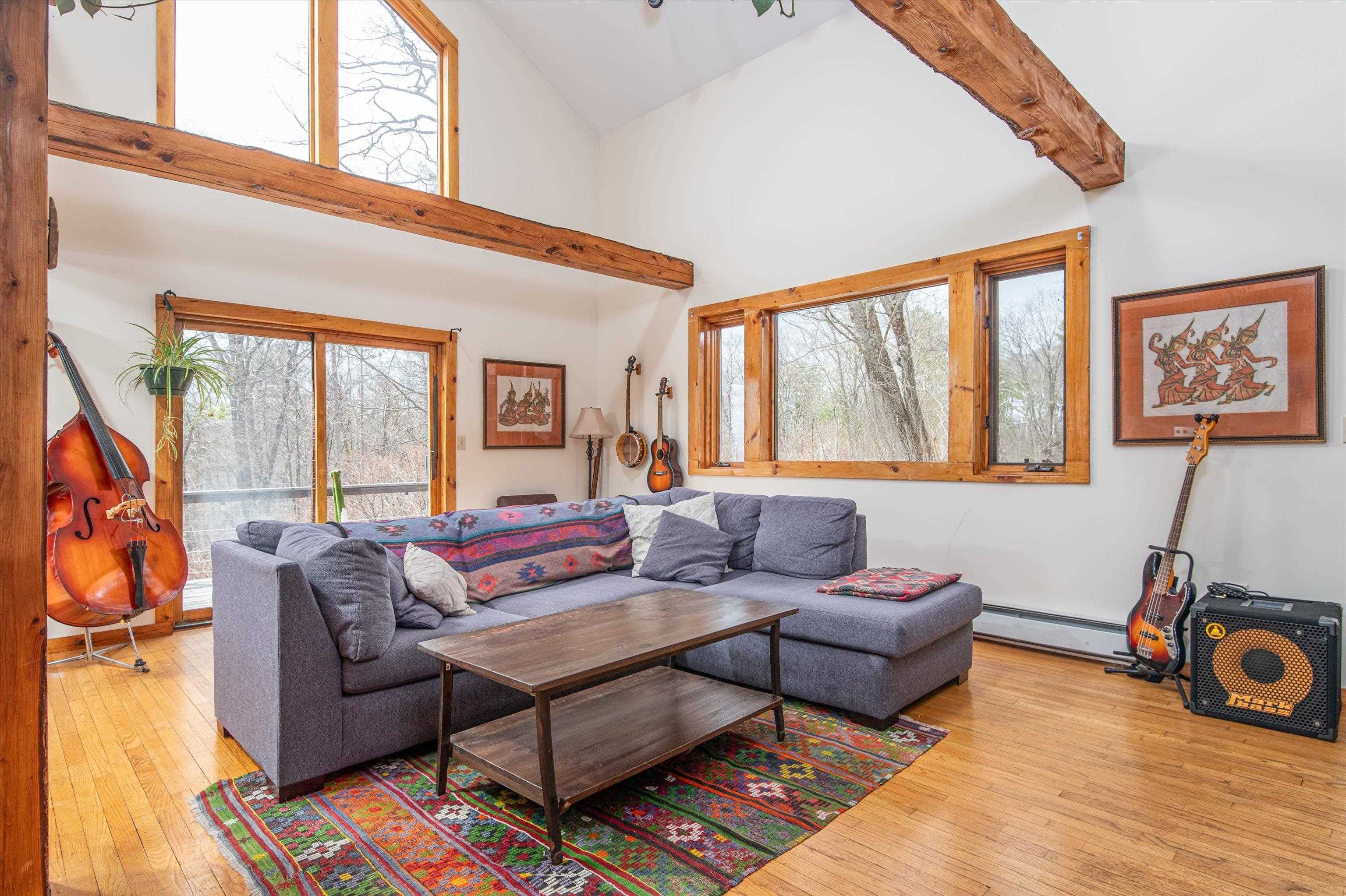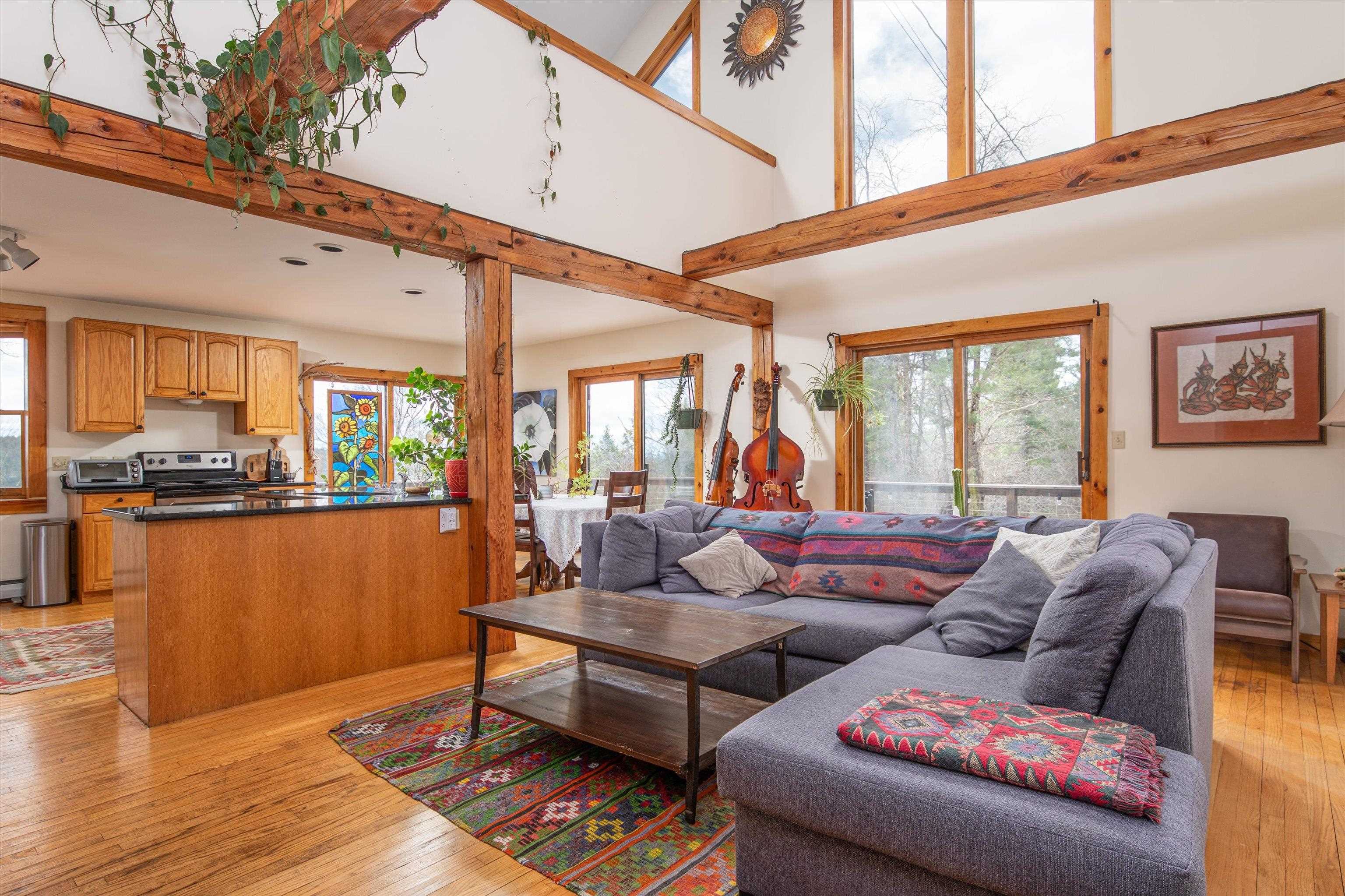 Welcome to your dream Vermont retreat. Tucked away on 15.6 private acres at the end of a quiet country road, this 2-bedroom, 2.5-bathroom home offers an inspiring blend of rustic elegance and modern comfort. Surrounded by mature oaks and sweeping views of Mount Monadnock, Black Mountain, and the rolling green hills. This home features classic post & beam construction, soaring cathedral ceilings, and an open, sunlit floor plan designed for peaceful and effortless living. Nearly every room frames the landscape beyond—rolling hills, distant peaks, and the ever-changing Vermont sky. Step out onto the spacious deck to take in the stillness of nature, or settle into one of the home’s many cozy nooks for a quiet morning with coffee and birdsong. The thoughtfully designed interior includes generous bedrooms, a well-equipped kitchen, and a warm, welcoming living area rich in natural wood textures. After a day spent exploring your own forested acreage, relax and recharge in the private sauna—your own secluded sanctuary. Conveniently located near Brattleboro and Mount Snow, with easy access to local rivers, trails, and the region’s beloved swimming holes, this one-of-a-kind Dummerston property offers a rare opportunity to live immersed in Vermont’s natural beauty—whether as a full-time residence or a peaceful getaway.